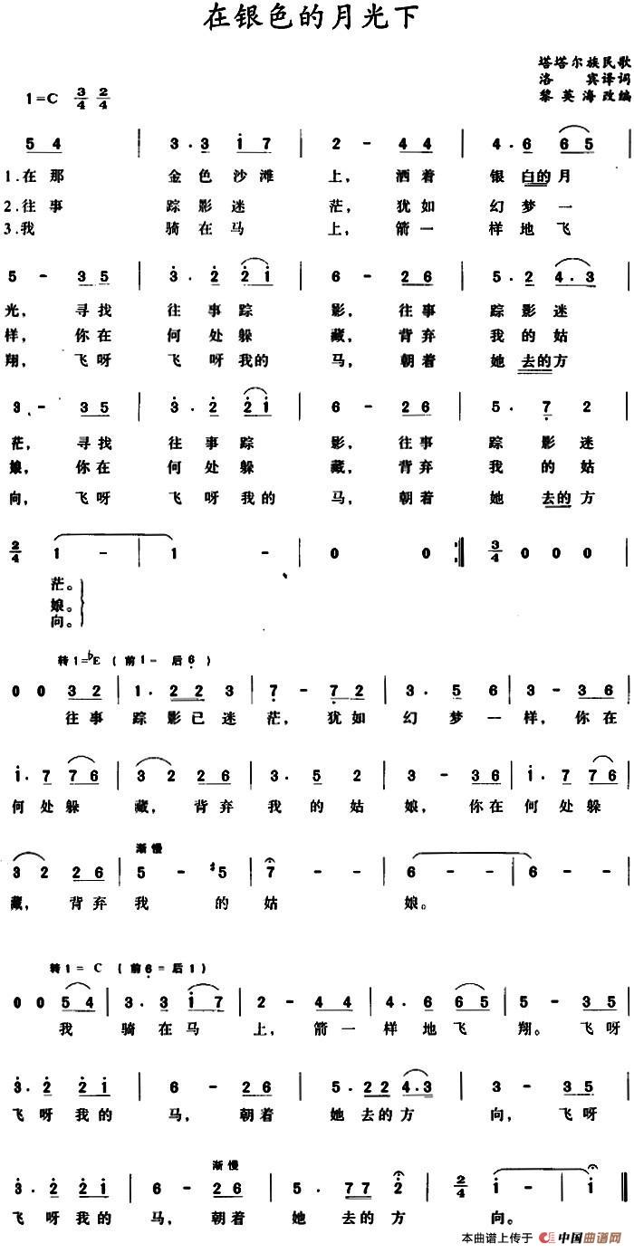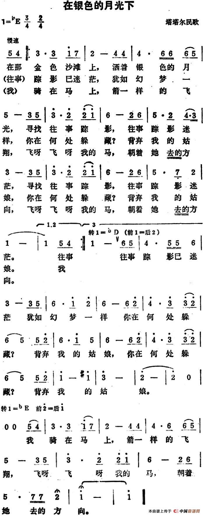 在银色的月光下(塔塔尔族民歌、4个版本)