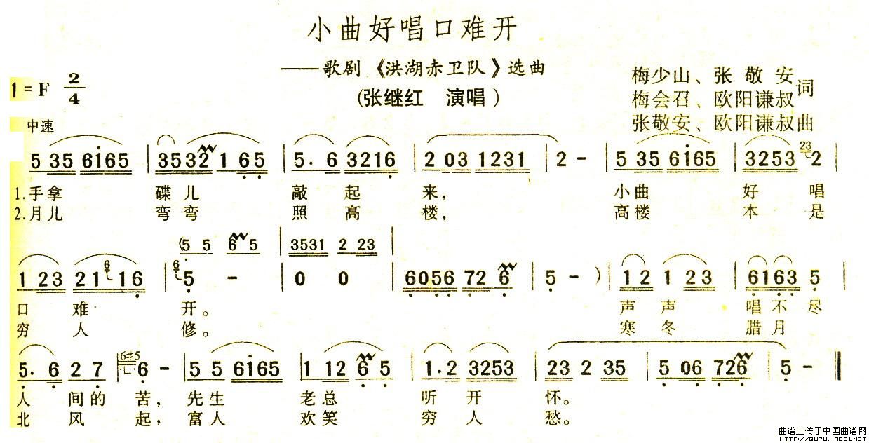 关于《小曲好唱口难开》曲谱的评论