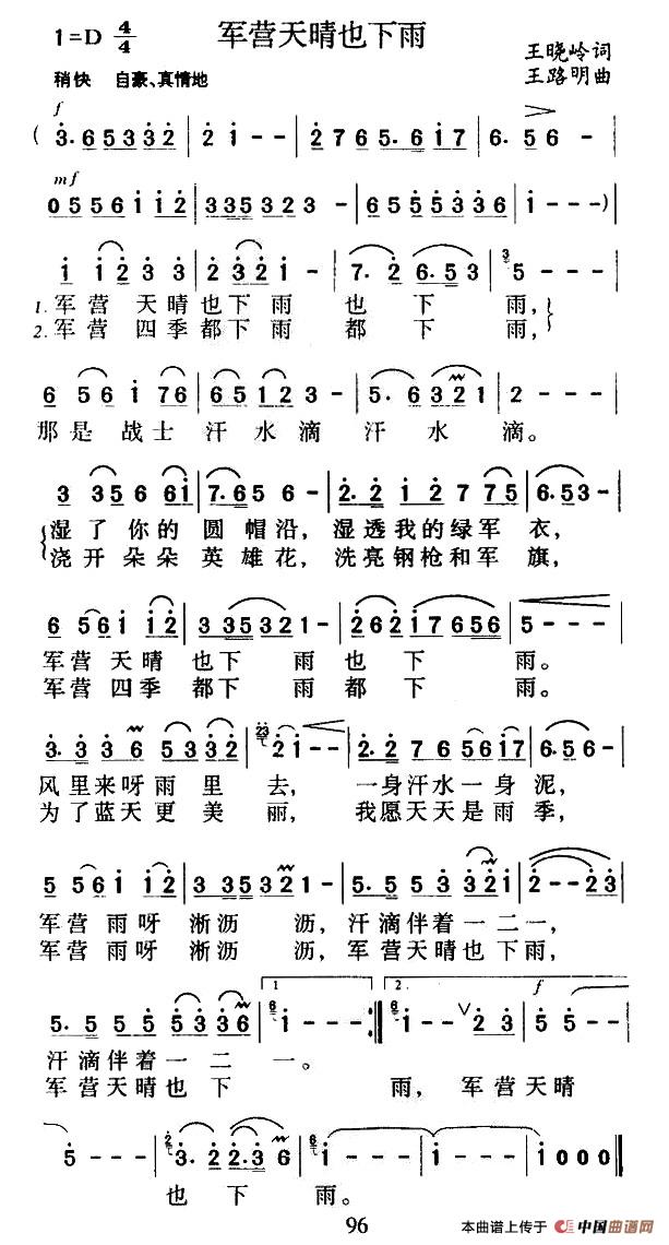 关于《军营天晴也下雨》曲谱的评论