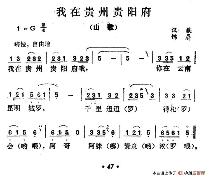 关于《我在贵州贵阳府》曲谱的评论