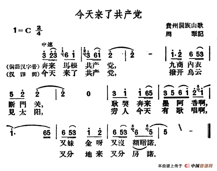 作曲:贵州侗族山歌、周犁记谱 来源:《中国曲谱网》 上传:秋叶起舞