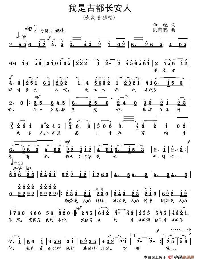 关于《我是古都长安人》曲谱的评论