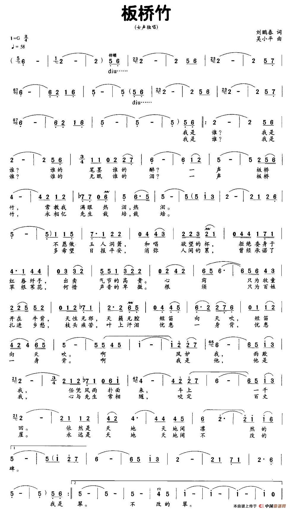 当前位置: 首页 民歌曲谱 三字歌名 板桥竹