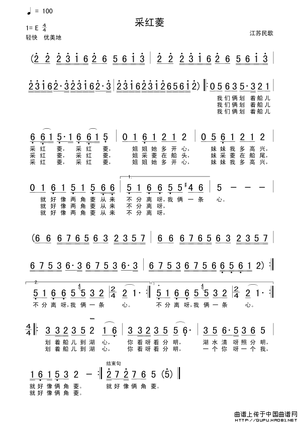 关于《采红菱》曲谱的评论