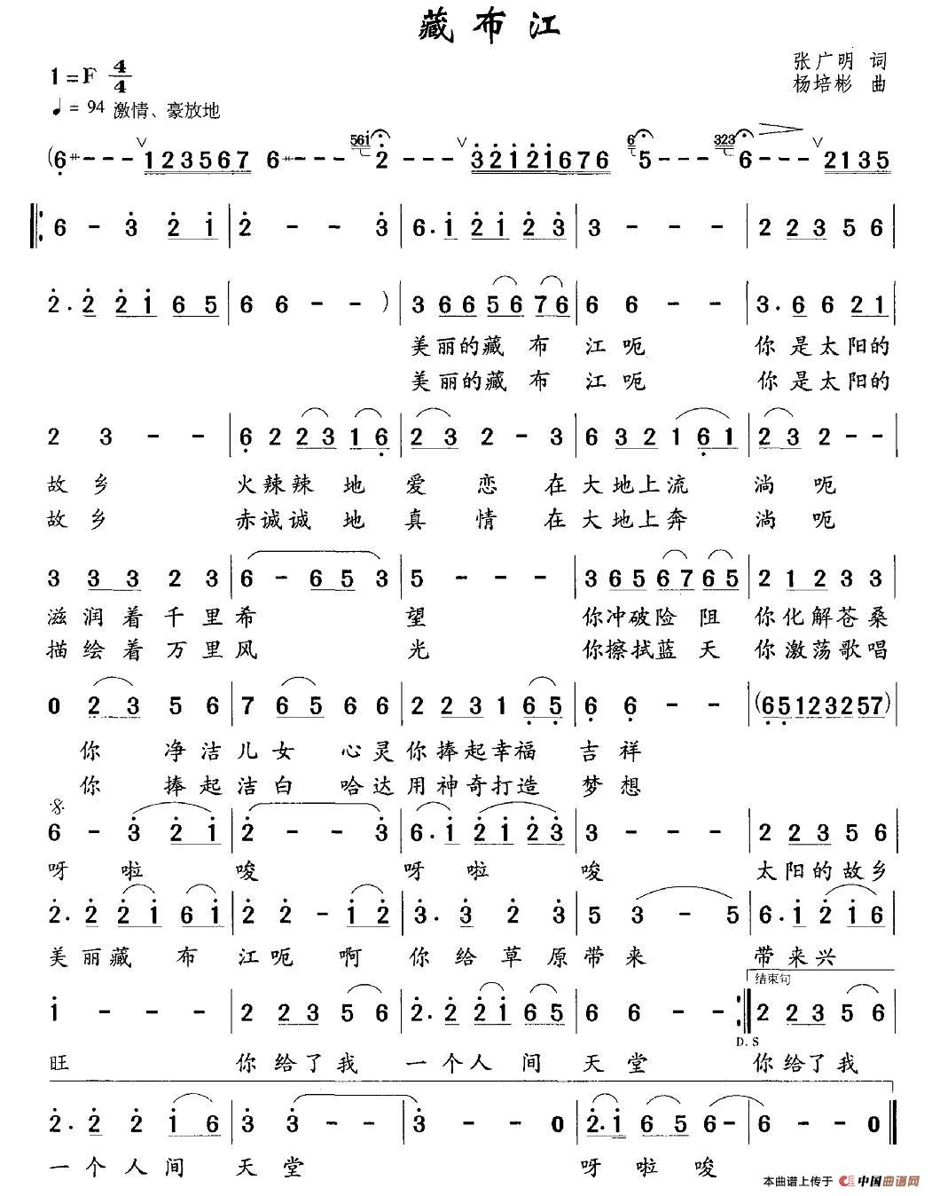 关于《藏布江》曲谱的评论