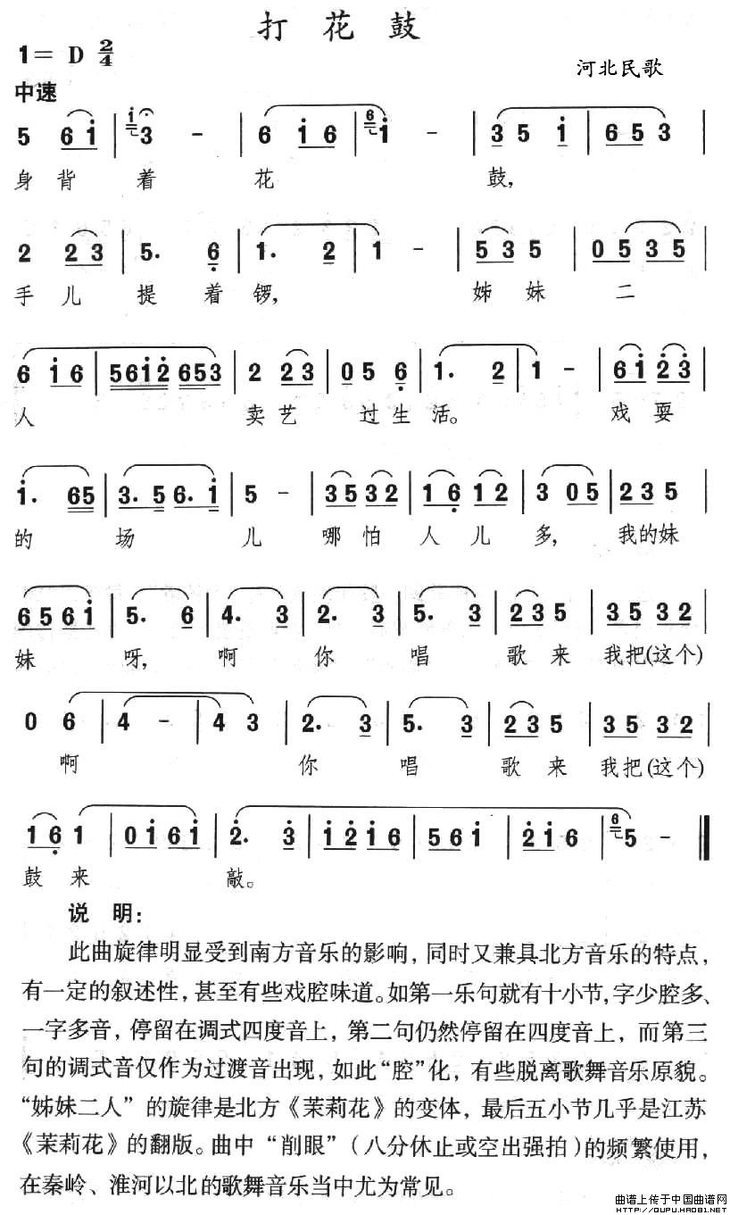关于《打花鼓》曲谱的评论