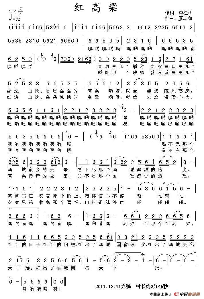 关于《红高粱》曲谱的评论