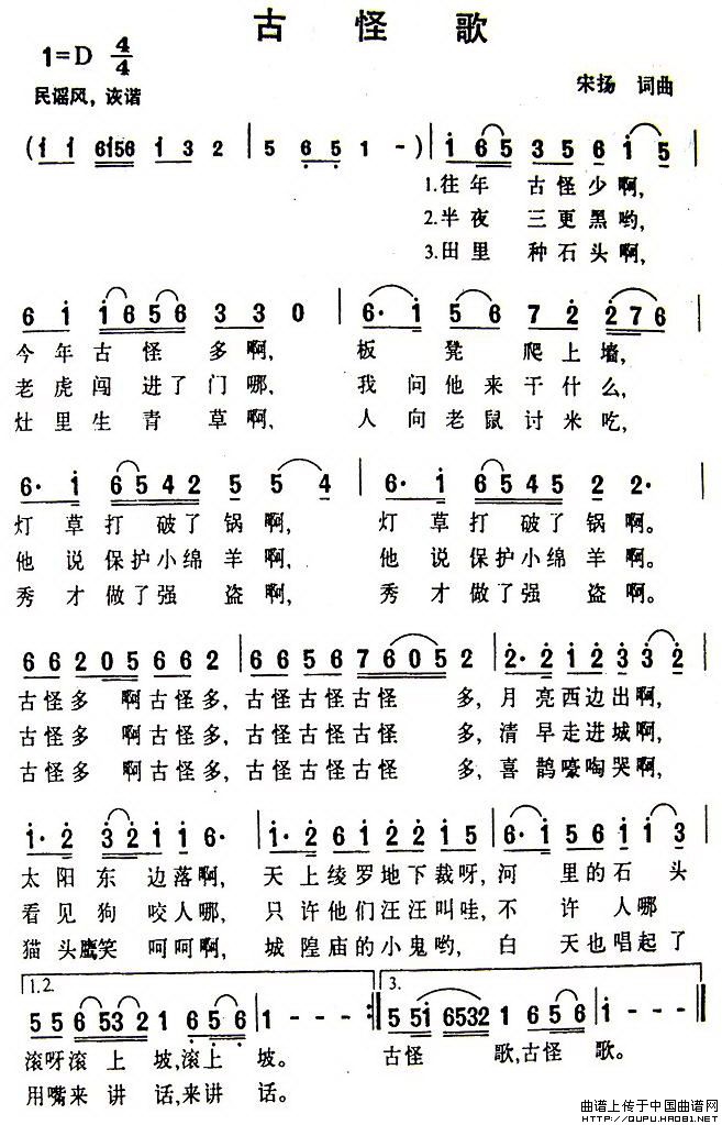 关于《古怪歌》曲谱的评论