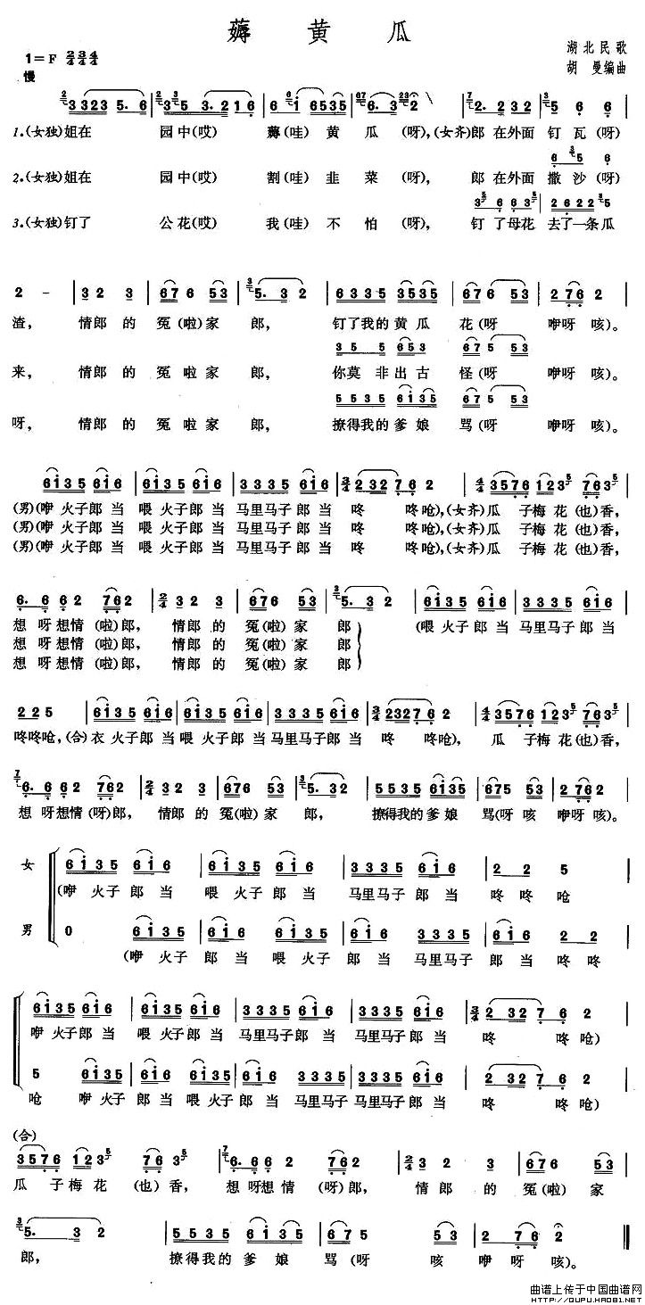 作曲:湖北民歌、胡曼编曲 格式:简谱 来源:《中国曲谱网》 上传:秋叶起舞