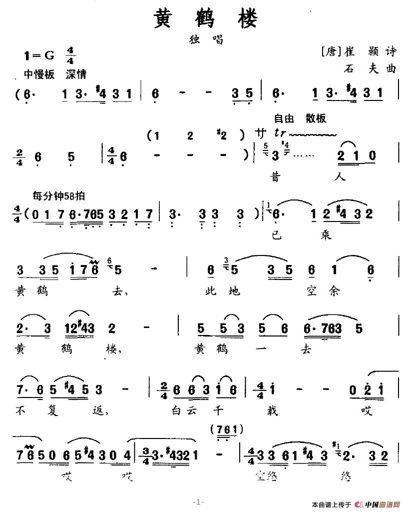 当前位置: 首页 民歌曲谱 三字歌名 黄鹤楼(崔颢词 石夫曲)