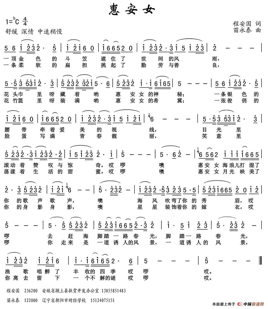 关于《惠安女》曲谱的评论