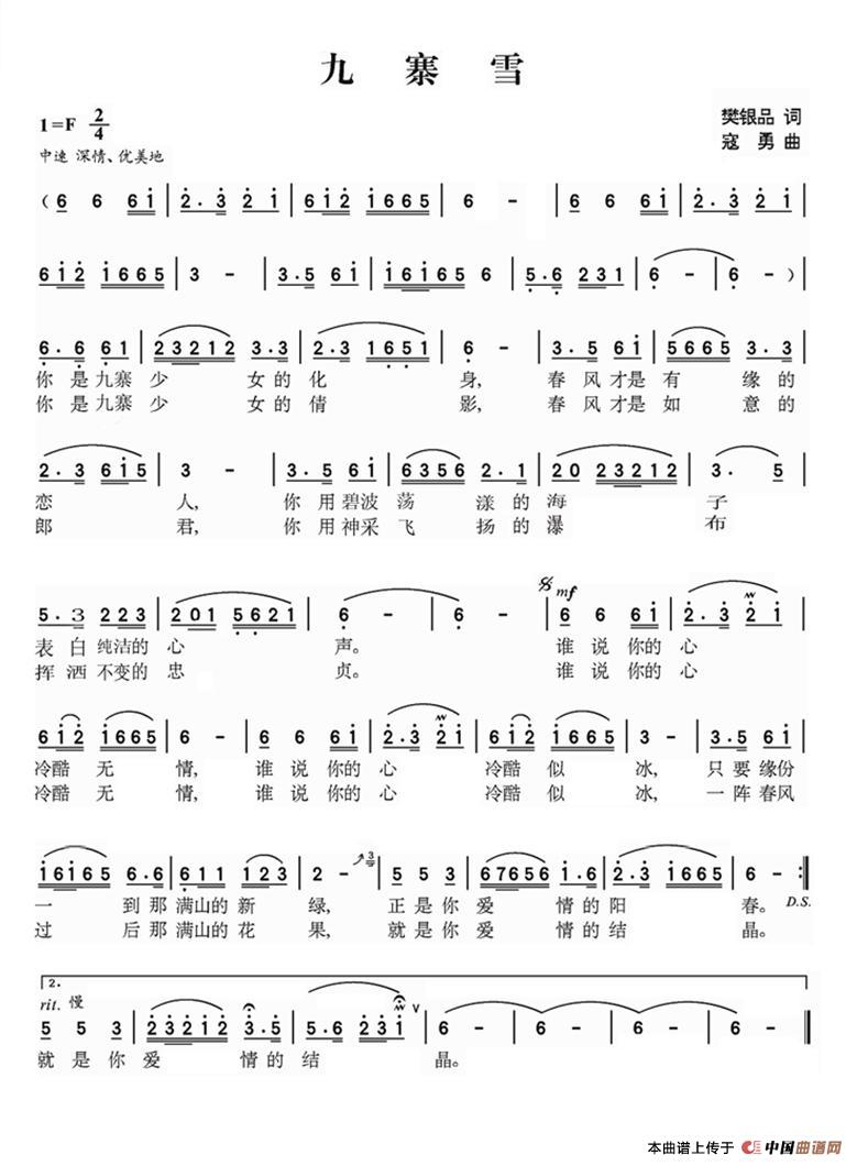 关于《九寨雪》曲谱的评论