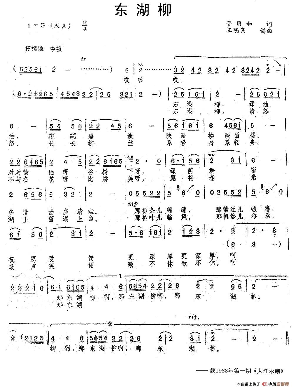 关于《东湖柳》曲谱的评论