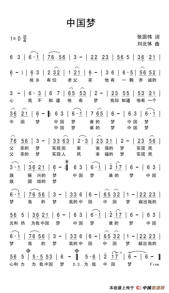 关于《中国梦》曲谱的评论