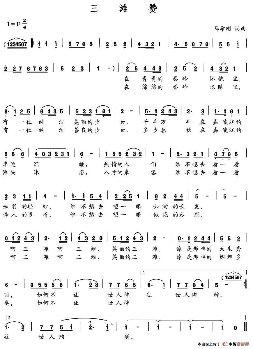 关于《三滩赞》曲谱的评论
