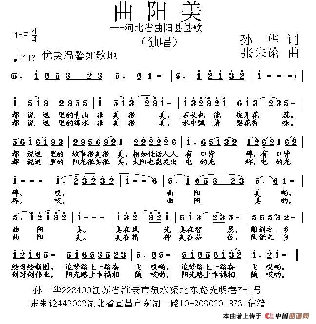 关于《曲阳美》曲谱的评论