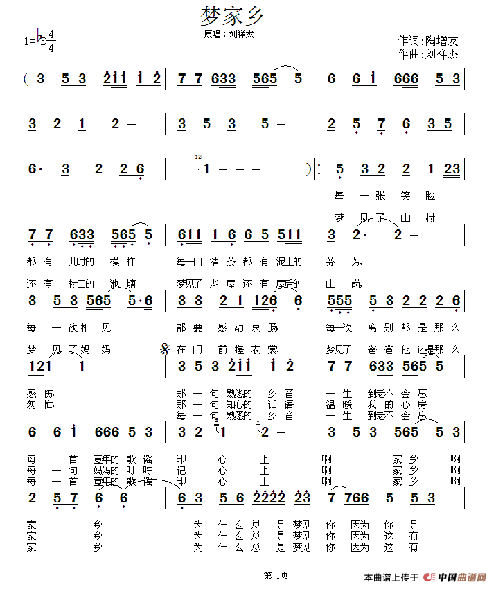 关于《梦家乡》曲谱的评论