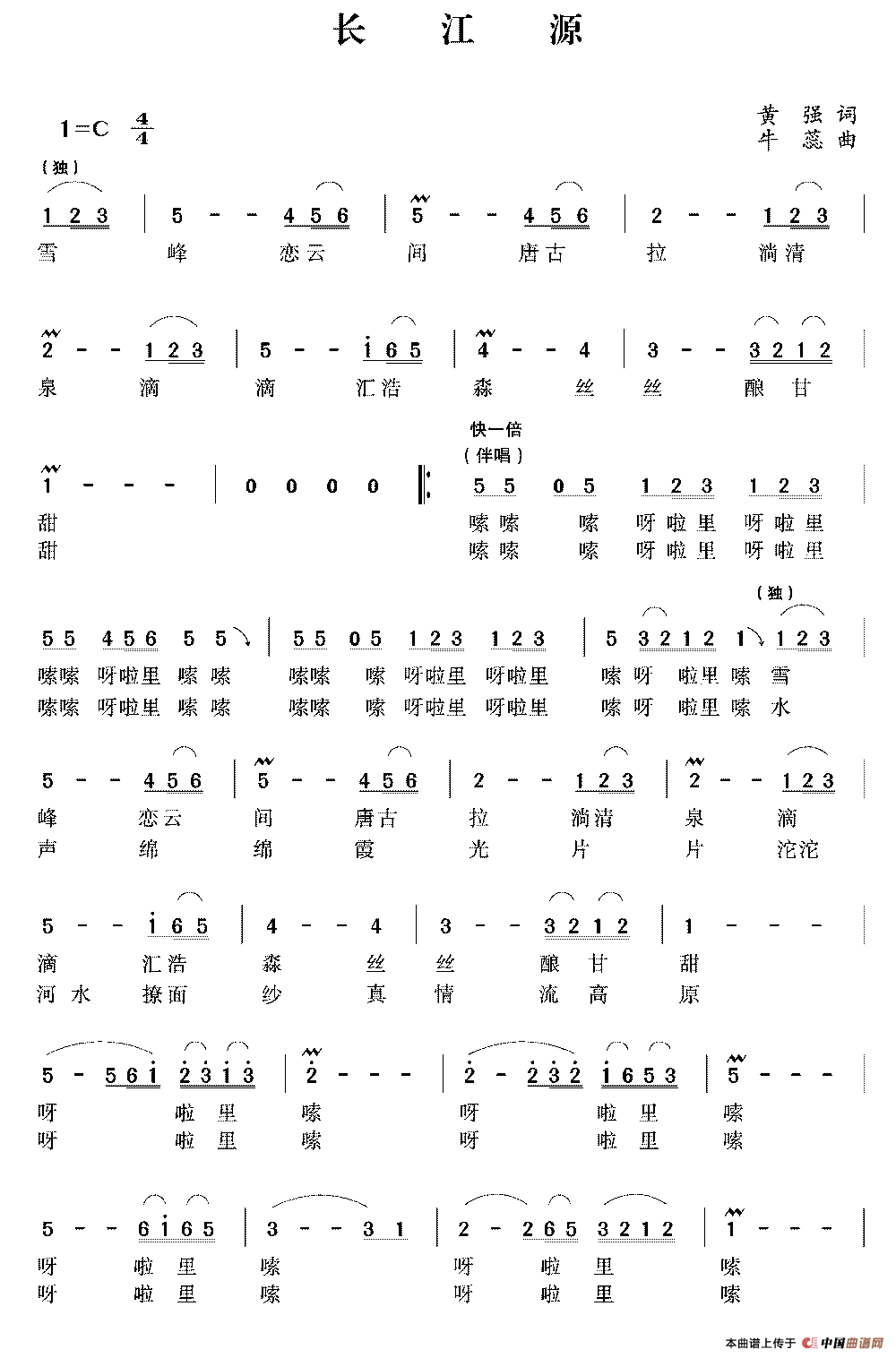 致谢:《中国曲谱网》衷心感谢作者老师馈赠原版歌谱!