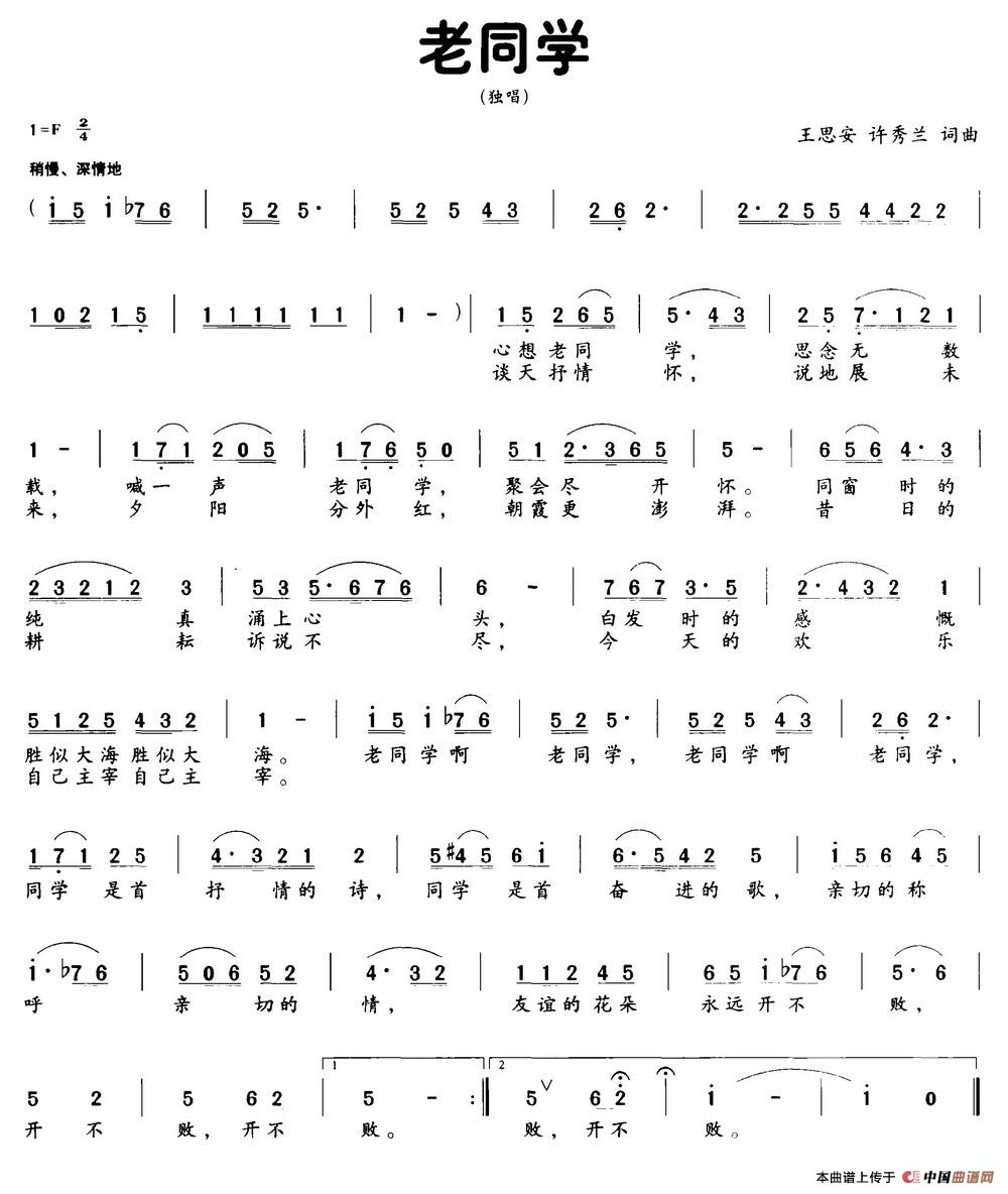老同学(王思安 许秀兰词曲)