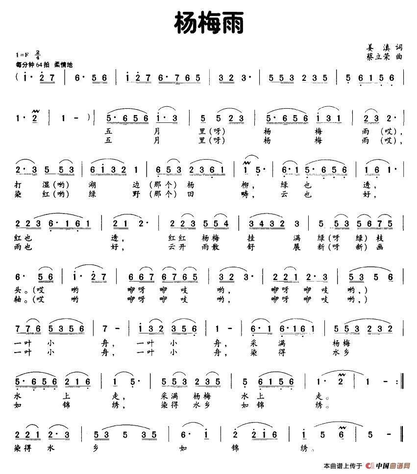 关于《杨梅雨》曲谱的评论