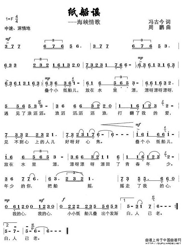 关于《纸船谣——海峡情歌》曲谱的评论
