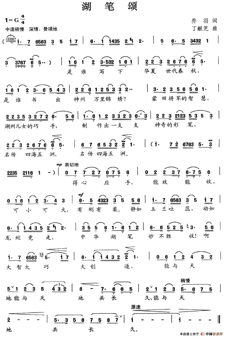 关于《湖笔颂》曲谱的评论