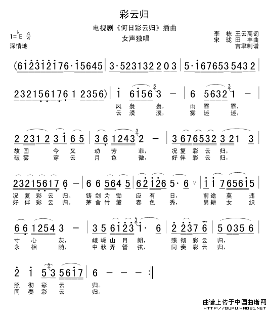 关于《彩云归》曲谱的评论