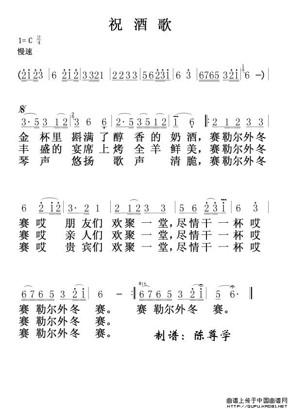 格式:简谱 来源:乐友陈尊学 制谱上传 上传:秋叶起舞