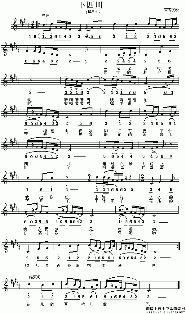 下四川(脚户令)(青海民歌)(线简谱混排版)