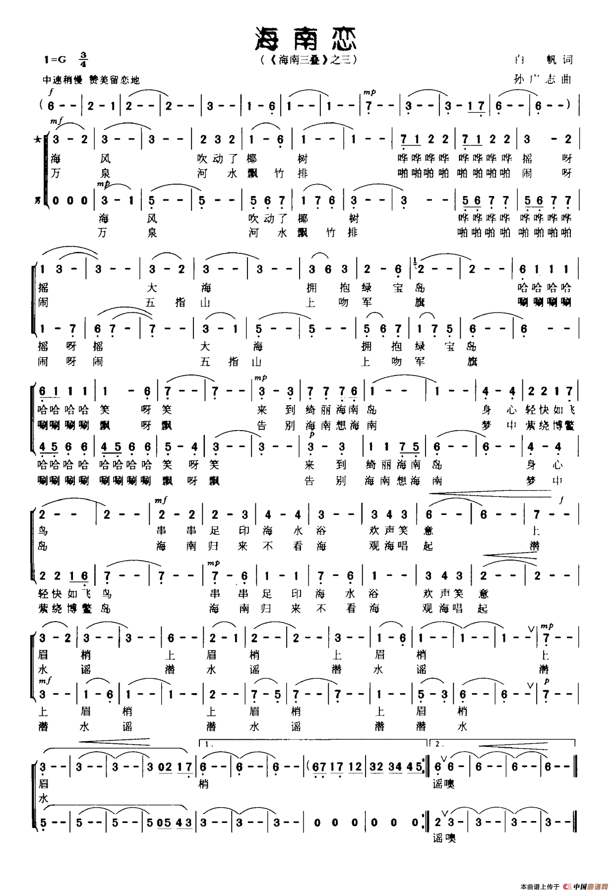 作词:白帆   作曲:孙广志   格式:简谱   来源:《中国曲谱网》   上传:孙广志   日期:2010-08-14   浏览次数: