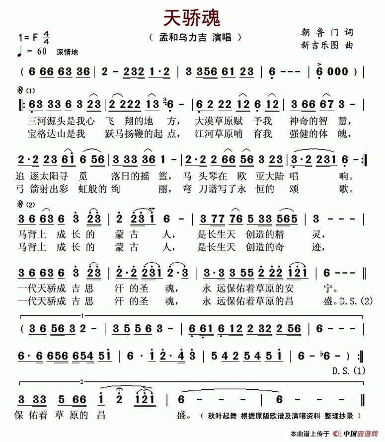 致谢:《中国曲谱网》衷心感谢编曲老师馈赠原版歌谱!