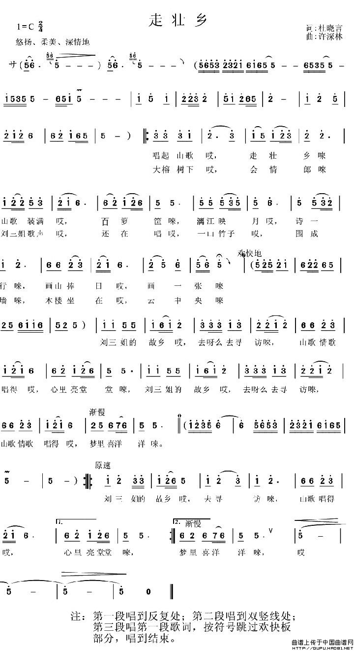 关于《走壮乡》曲谱的评论