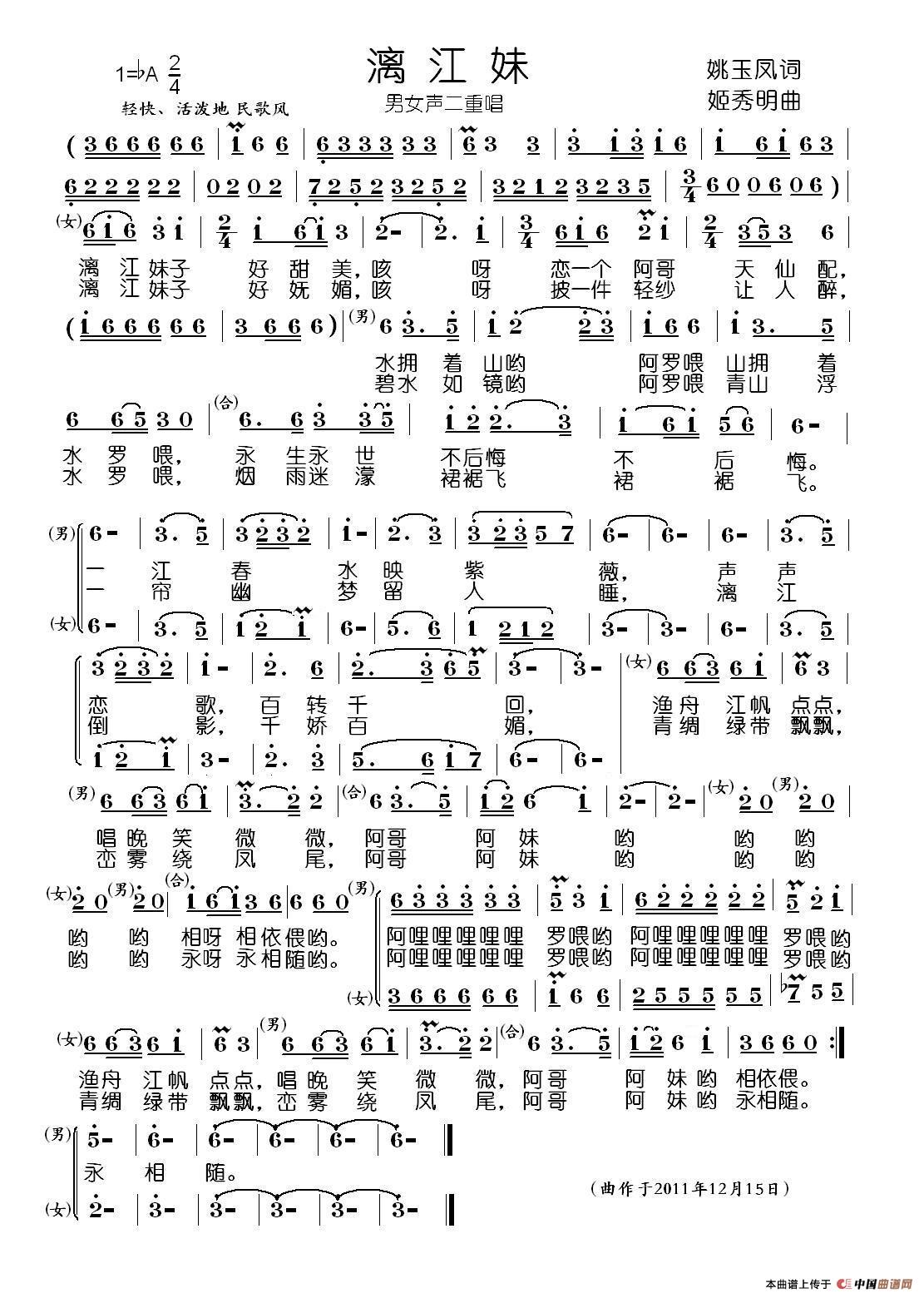 提示:在曲谱图片上单击右键,选择"图片另存为..."即可将曲谱保存到您的电脑中,打印时候可将图片插入到WORD中,调整合适大小打印即可。