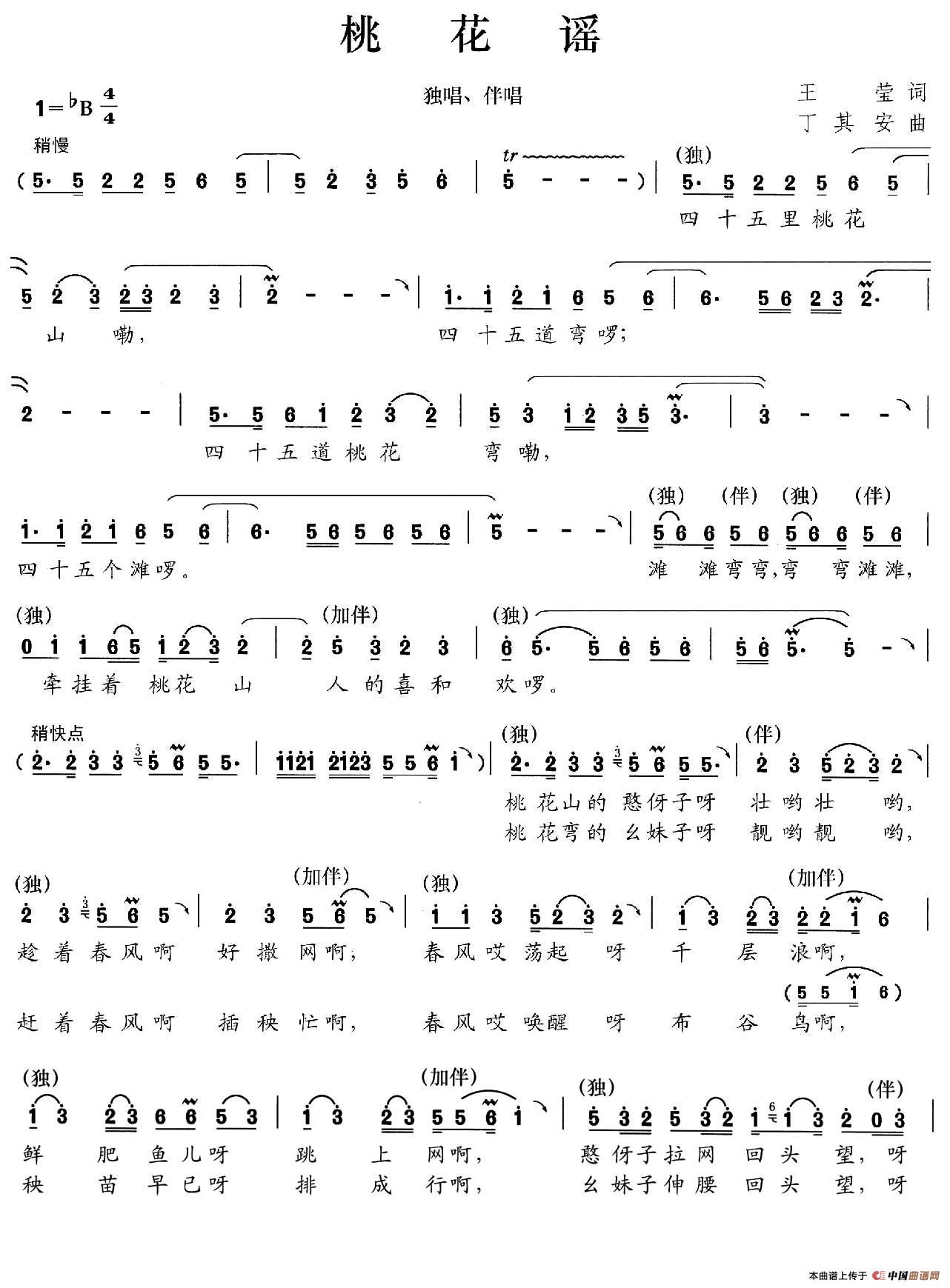 当前位置: 首页 民歌曲谱 三字歌名 桃花谣(王莹词 丁其安曲)