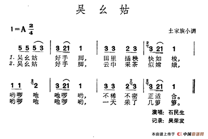 来源:《湘西土家族苗族民间歌曲乐曲选》 上传:秋叶起舞