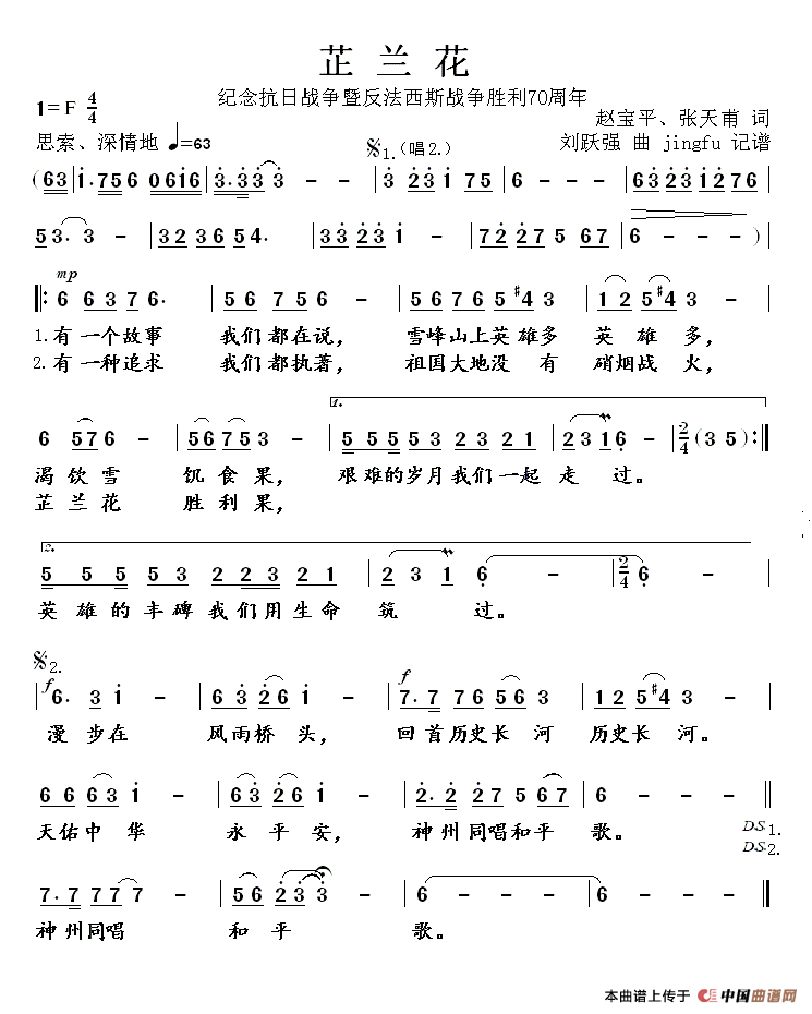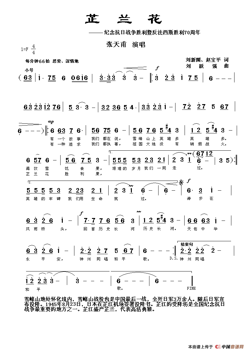 怀化是中国国家交响乐团著名男高音歌唱家张天甫的家乡,张老师作为怀化培养的艺术家,以纪念抗战胜利70周年为契机,他利用自己在全国艺术圈的影响力,组织多位专家为纪念活动、为家乡打造了一首主题歌,名字叫《芷兰花》。