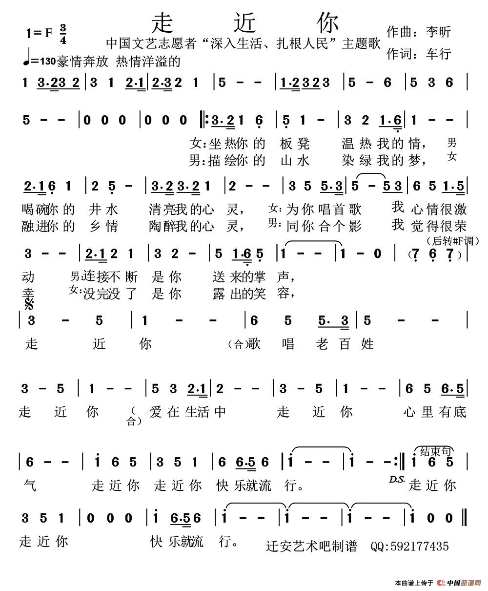 当前位置: 首页 民歌曲谱 三字歌名 走近你(中国文艺志愿者主题歌)