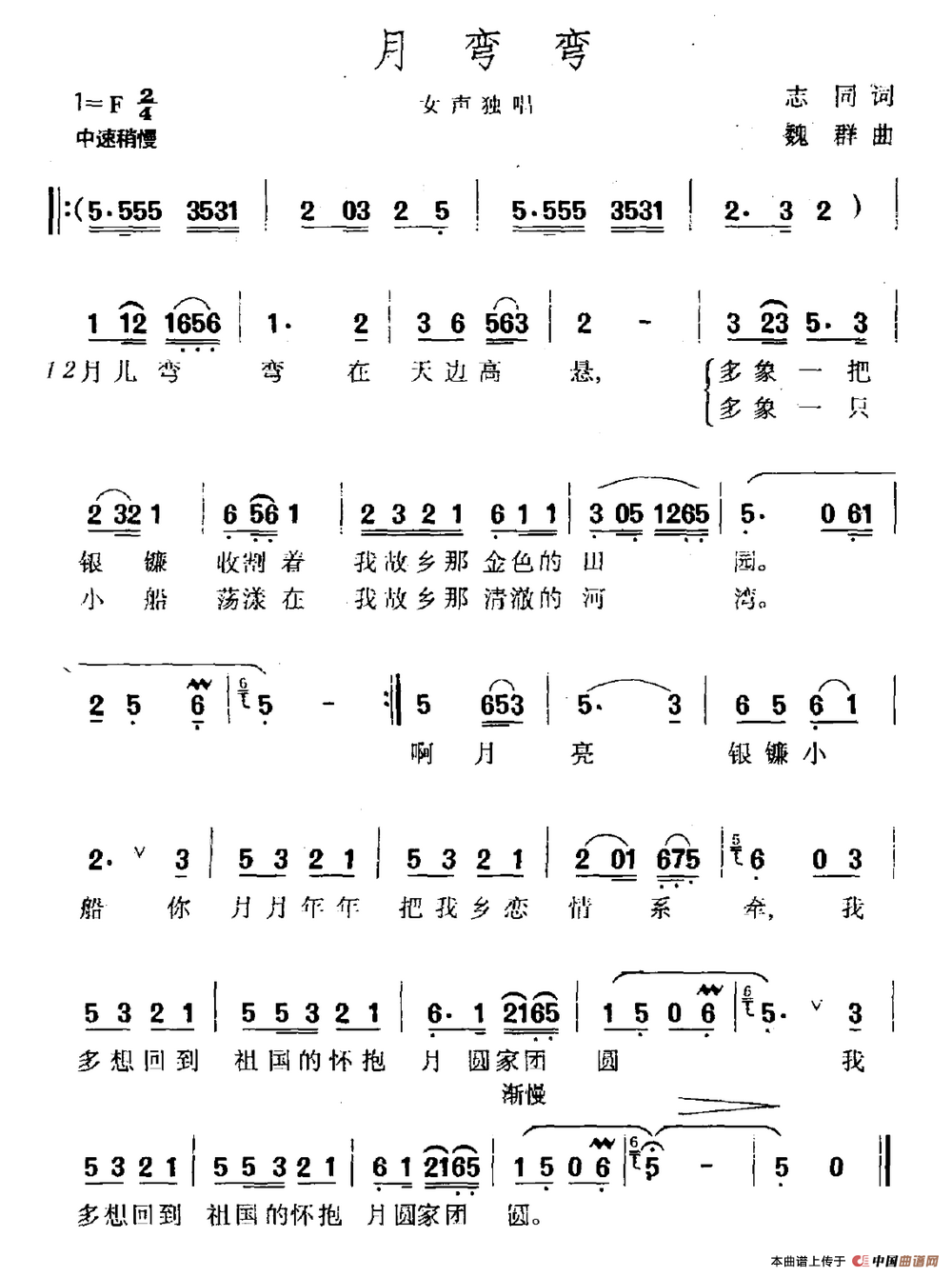 关于《月弯弯》曲谱的评论