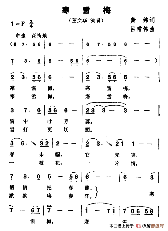 关于《寒雪梅》曲谱的评论