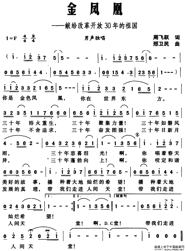 关于《金凤凰——献给改革开放30年的祖国》曲谱的评论