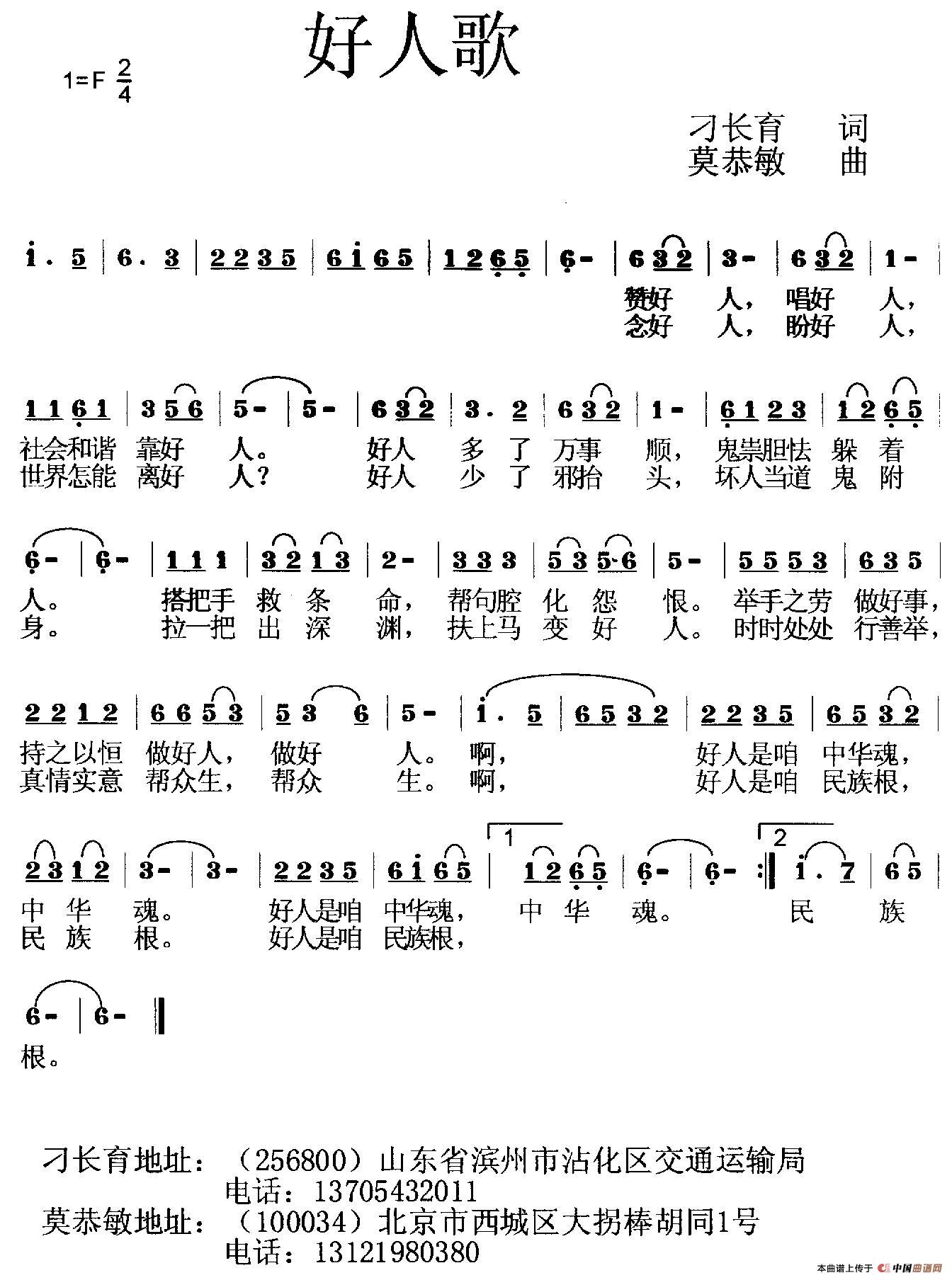 关于《好人歌》曲谱的评论