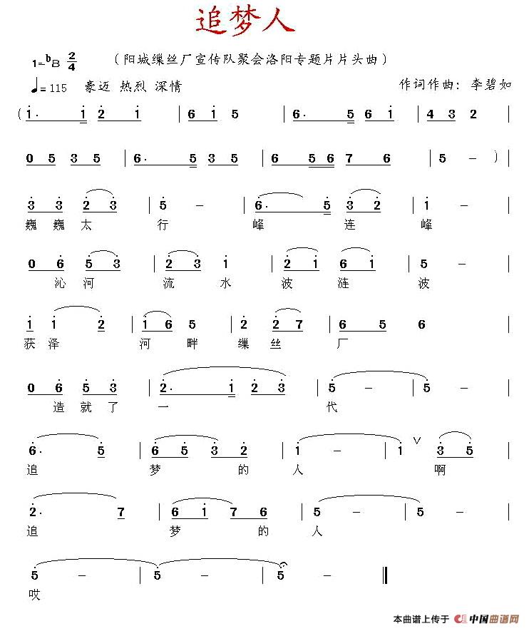 关于《追梦人》曲谱的评论