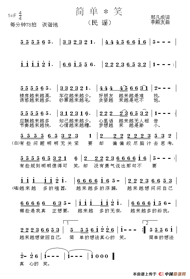 致谢:《中国曲谱网》衷心感谢作者老师馈赠原版歌谱!