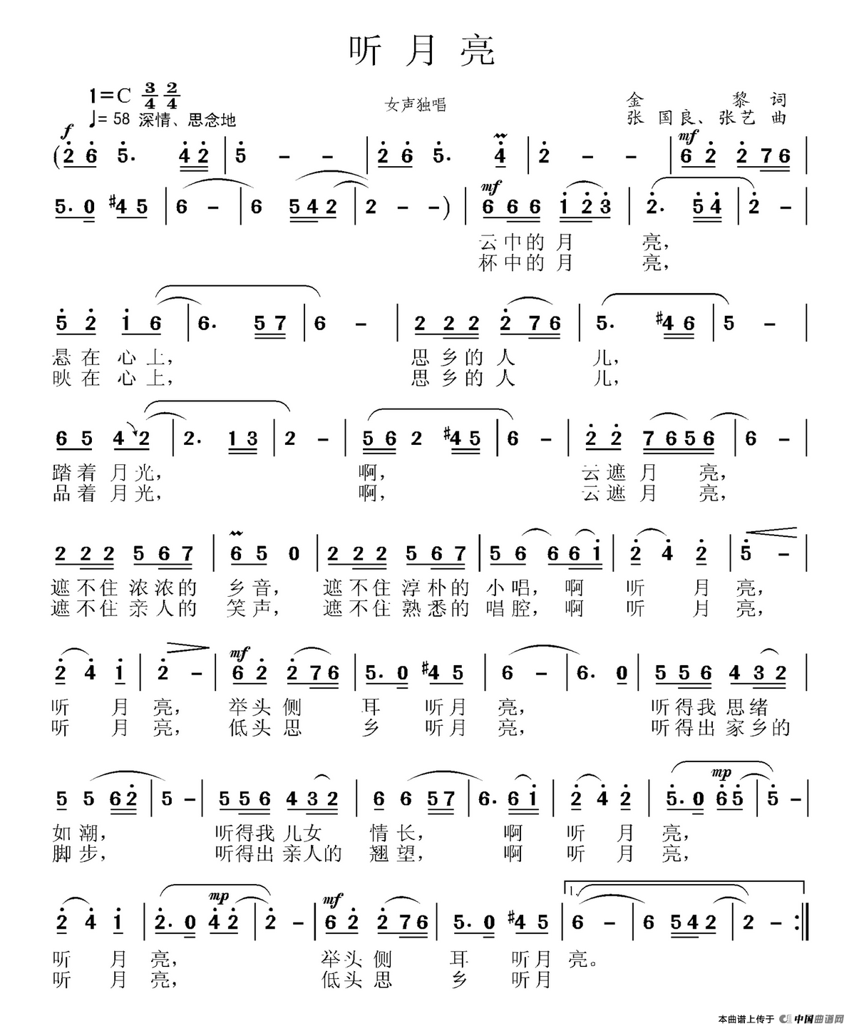 致谢:《中国曲谱网》衷心感谢作者老师馈赠原版歌谱!