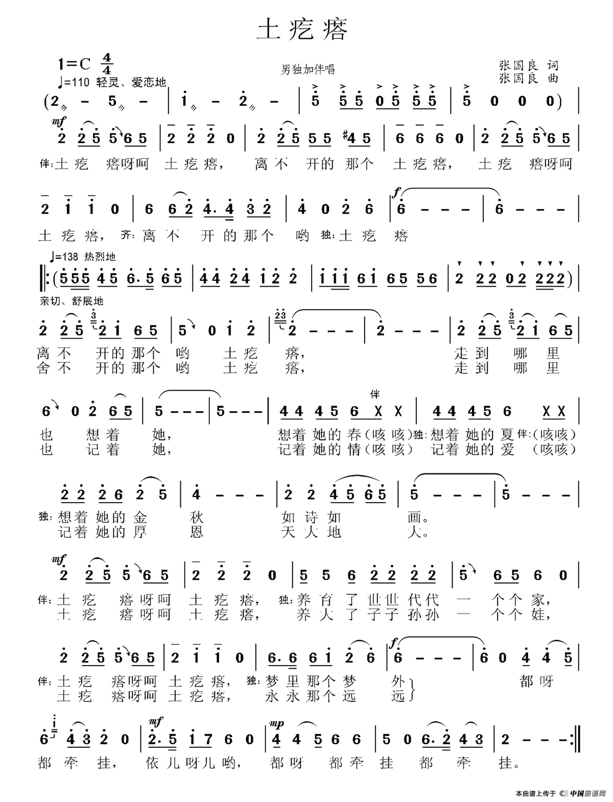 致谢:《中国曲谱网》衷心感谢作者老师馈赠原版歌谱!