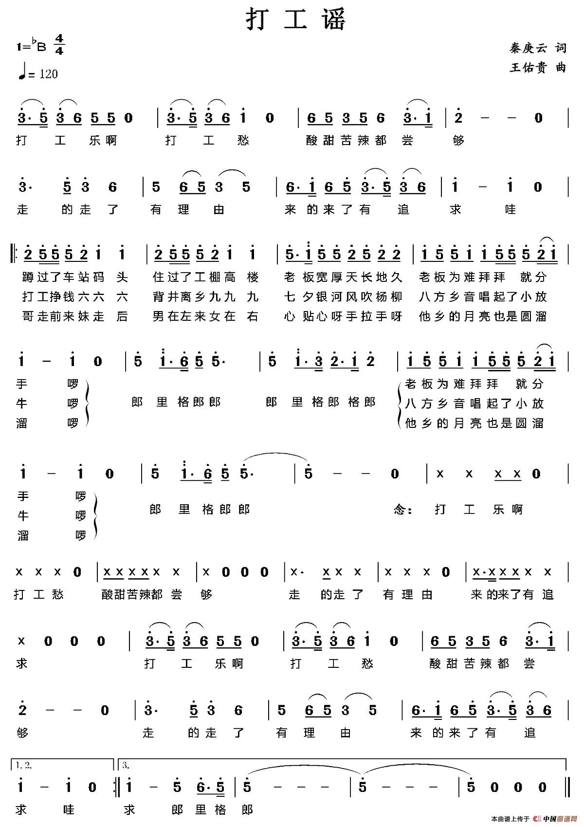 关于《打工谣》曲谱的评论
