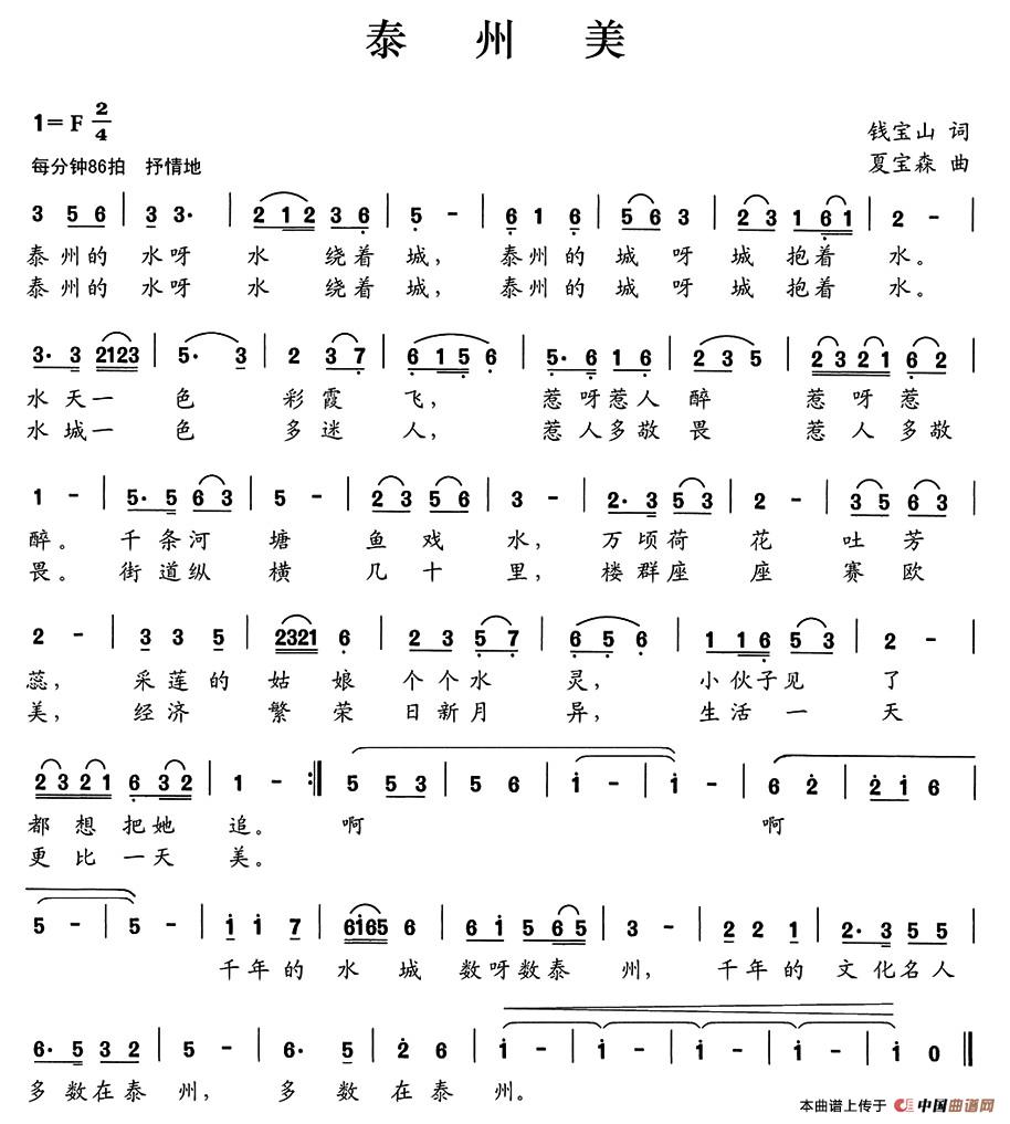 致谢:《中国曲谱网》衷心感谢作者老师馈赠原版歌谱!