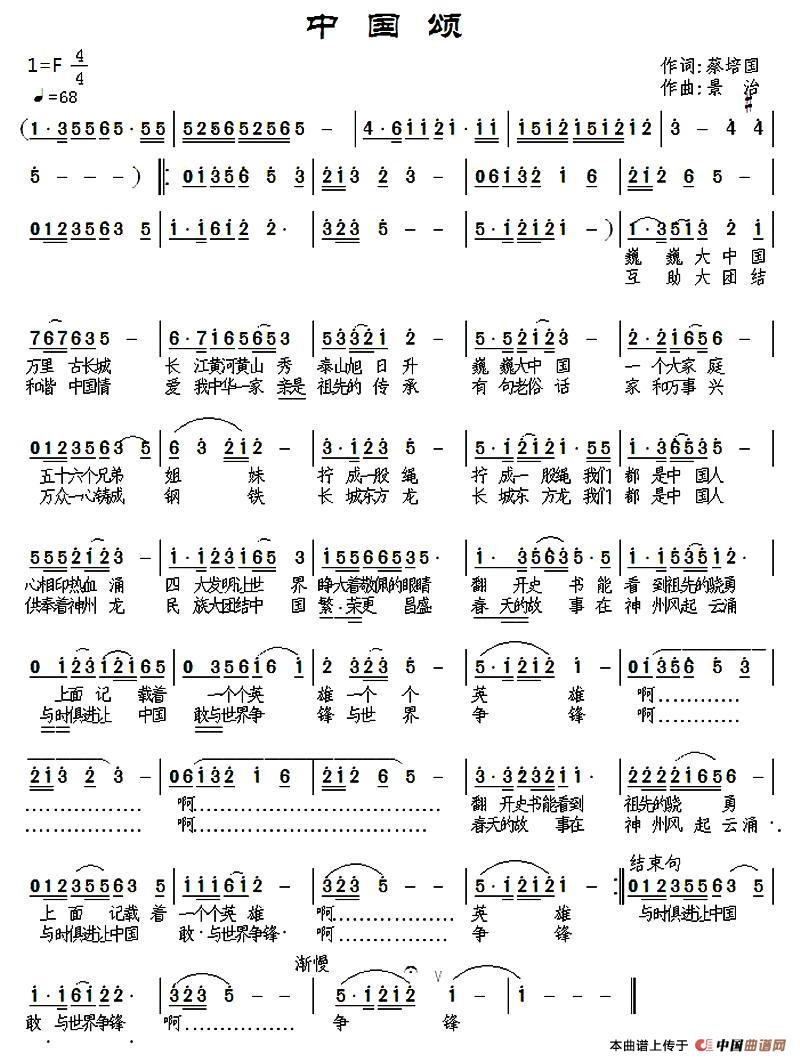 关于《中国颂》曲谱的评论