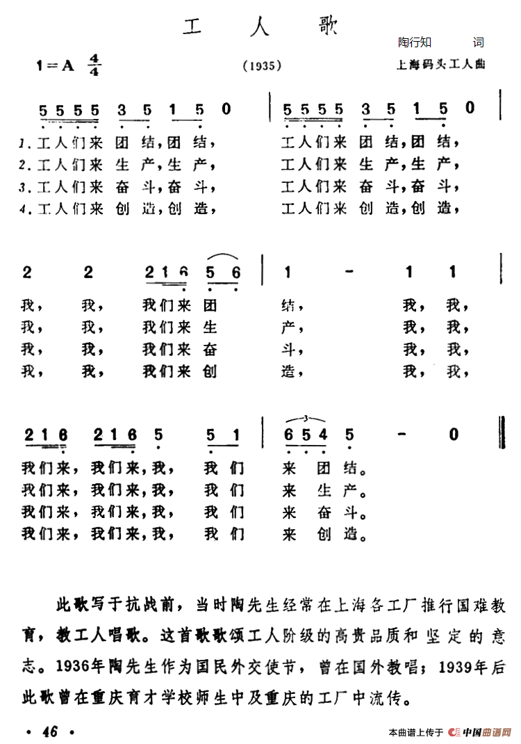 关于《工人歌》曲谱的评论
