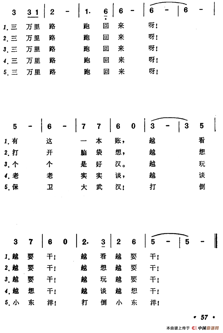 关于《三万歌》曲谱的评论